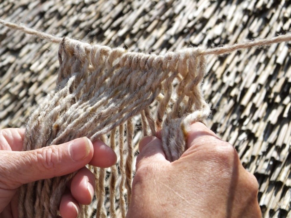 In de workshop gaan we in op deze kennis en enkele technieken zelf uitproberen, waaronder spinnen en twijnen. Na het maken van draden gaan we deze draden verwerken volgens een oude vlechttechniek: sprang. Het meisje van Yde is gevonden met een sprangband.