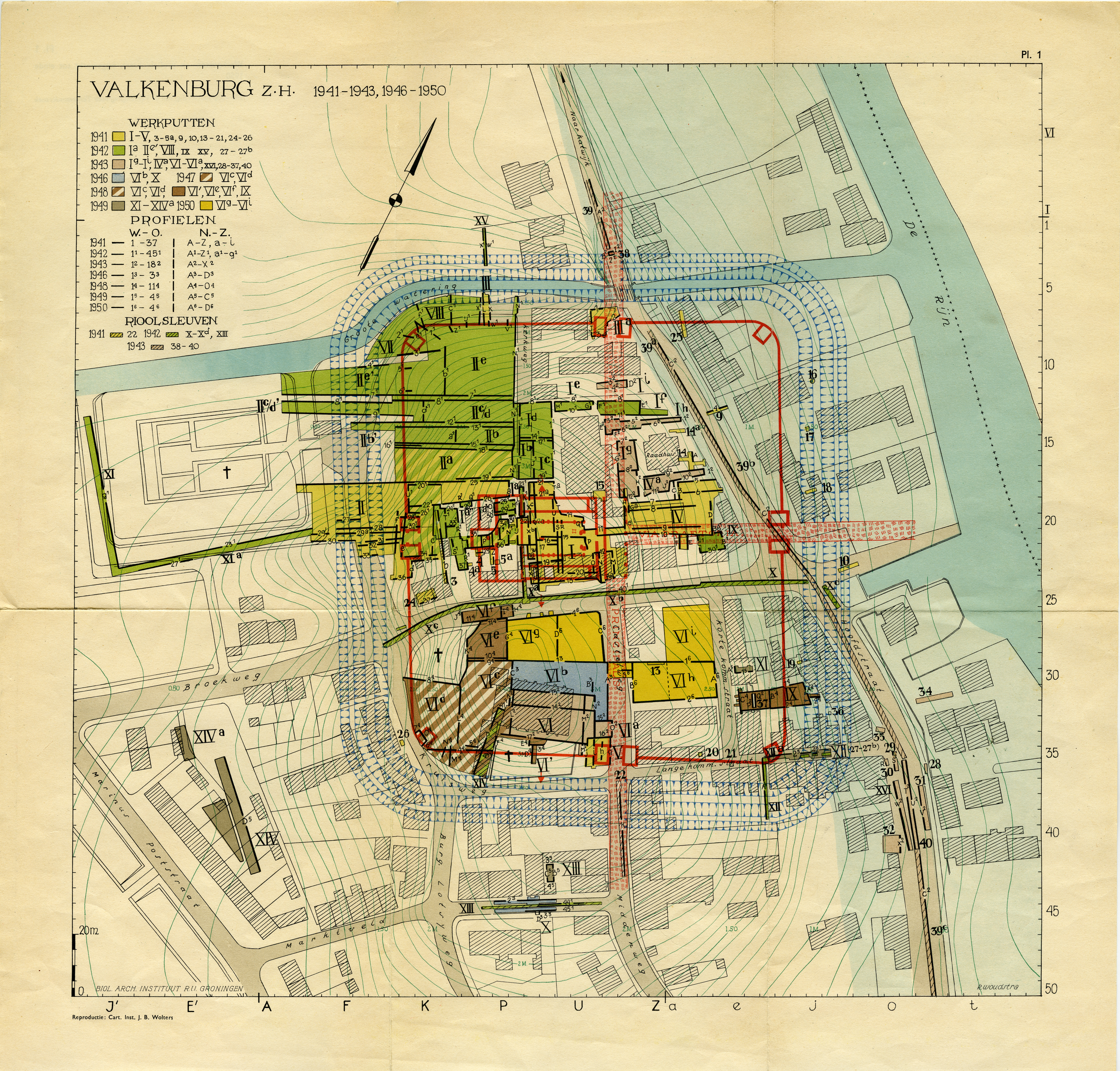 - De gedetailleerde plattegrond van de Romeinse castella is te vinden aan de rechterkant van deze webpagina onder Bijlagen: Overzichtskaart_opgravingen_castellum_ValkenburgZH_1941-43_46-50_kl_coll_RMO.jpg (herkomst: collectie RMO)